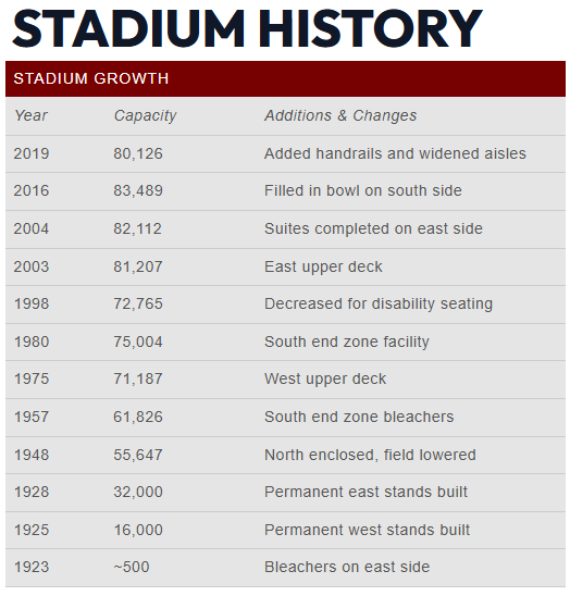 Oklahoma Memorial Stadium capacity history: