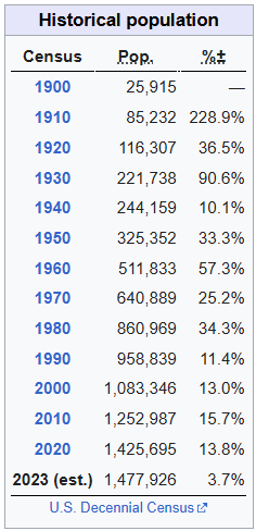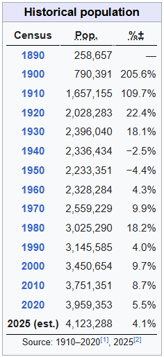 Population history for the state of Oklahoma: