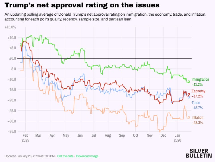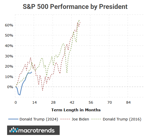 Another benchmark would be to compare him against the past two presidential terms (Biden and Trump I). He is underperforming both. And he certainly doesn’t want me to include Obama—it would just look worse.