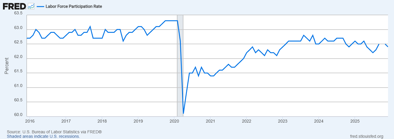 Employment overall - loss. The unemployment rate has slightly increased and the labor force participation rate has slightly fallen. Job growth has consistently slowed.