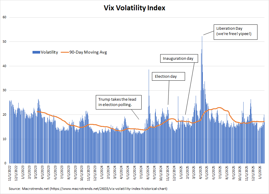 Volatility hasn’t been favorable either rising considerably in 2025 over 2024. (annotations below are my own)