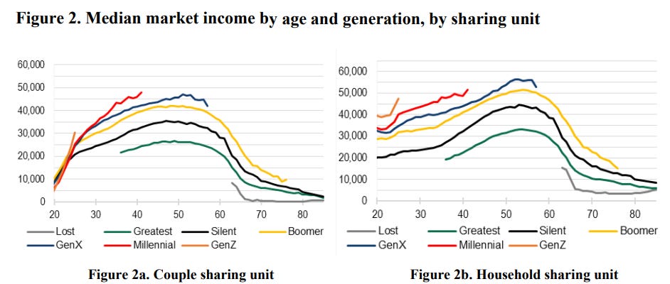 First, Jeremy Horpedahl shares evidence that Younger Generations Have Higher Incomes Too. The “too” is because this is a follow-on to his recent work showing that younger generations are keeping up with the wealth track of earlier generations. His short piece is a nice summary of a recent paper by the Kevin Corinth and Jeff Larrimore published by the Federal Reserve.