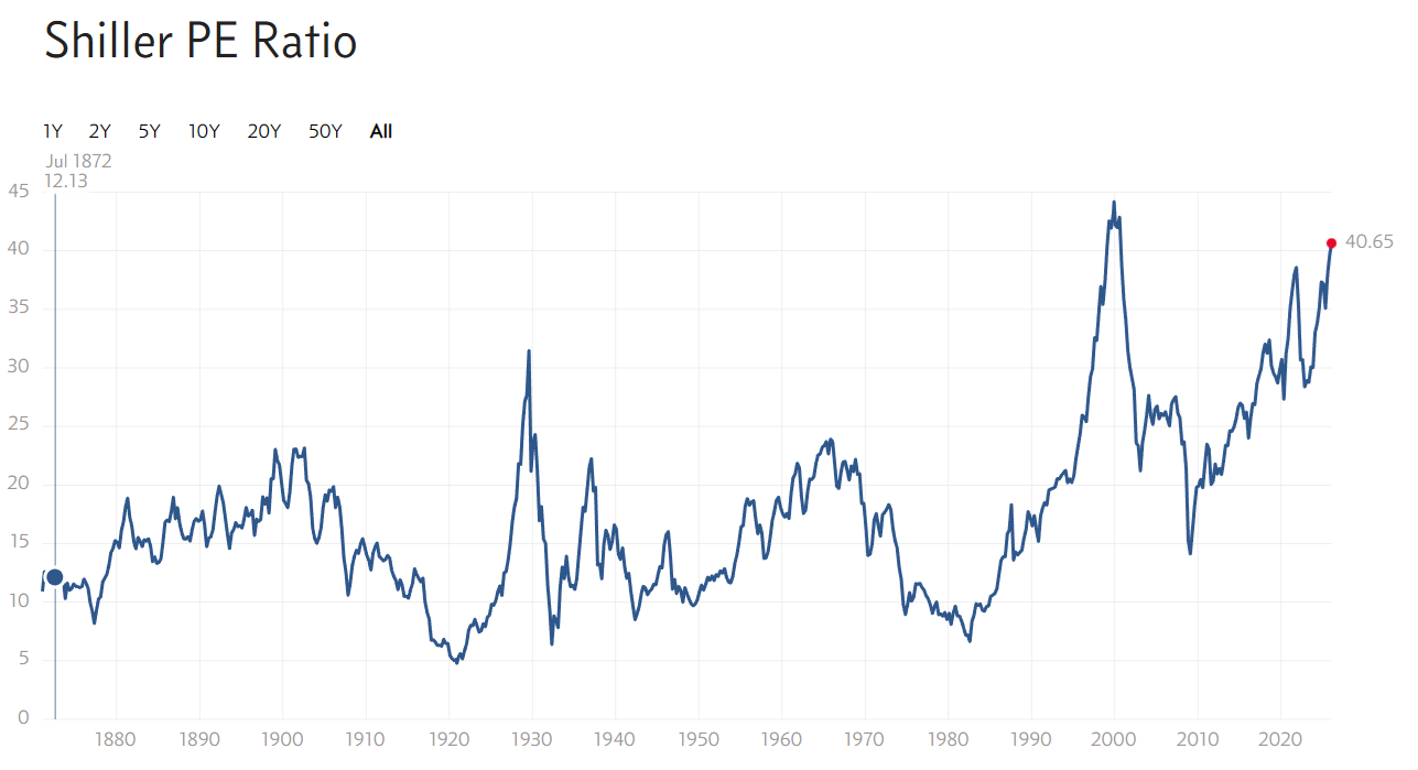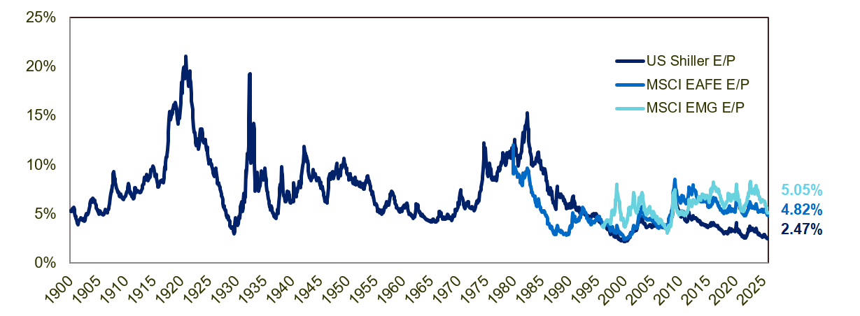 And here is the more familiar inverse of that chart for the U.S. portion courtesy of Multpl.com.