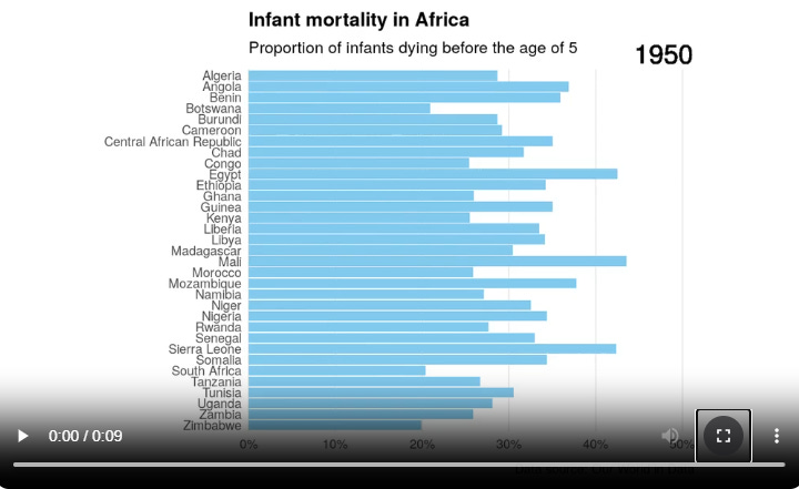 We start with the wonderful decline in infant/child mortality as captured in the animation on the Substack of Steve Stewart-Williams. The link has a lot of other interesting stats and facts. Below is a screenshot of where infant/child mortality was in Africa in 1950. Click through to watch the rate by country basically cut in half and then in half again.