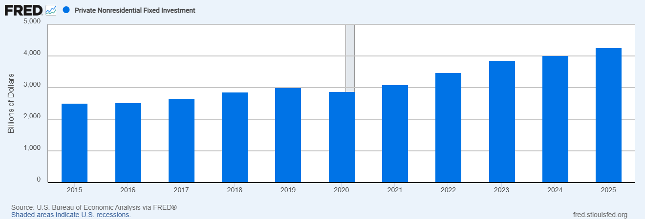 In 2024 the U.S. had a record $4 trillion of private investment as shown in this chart: