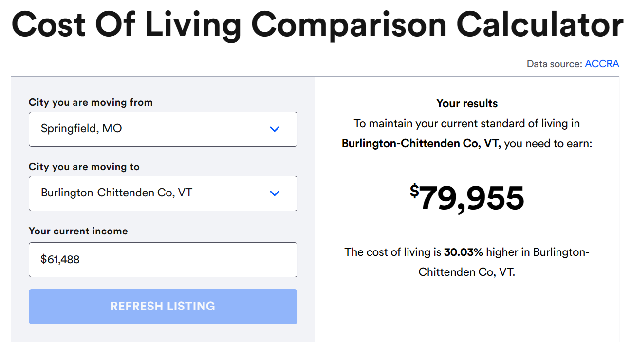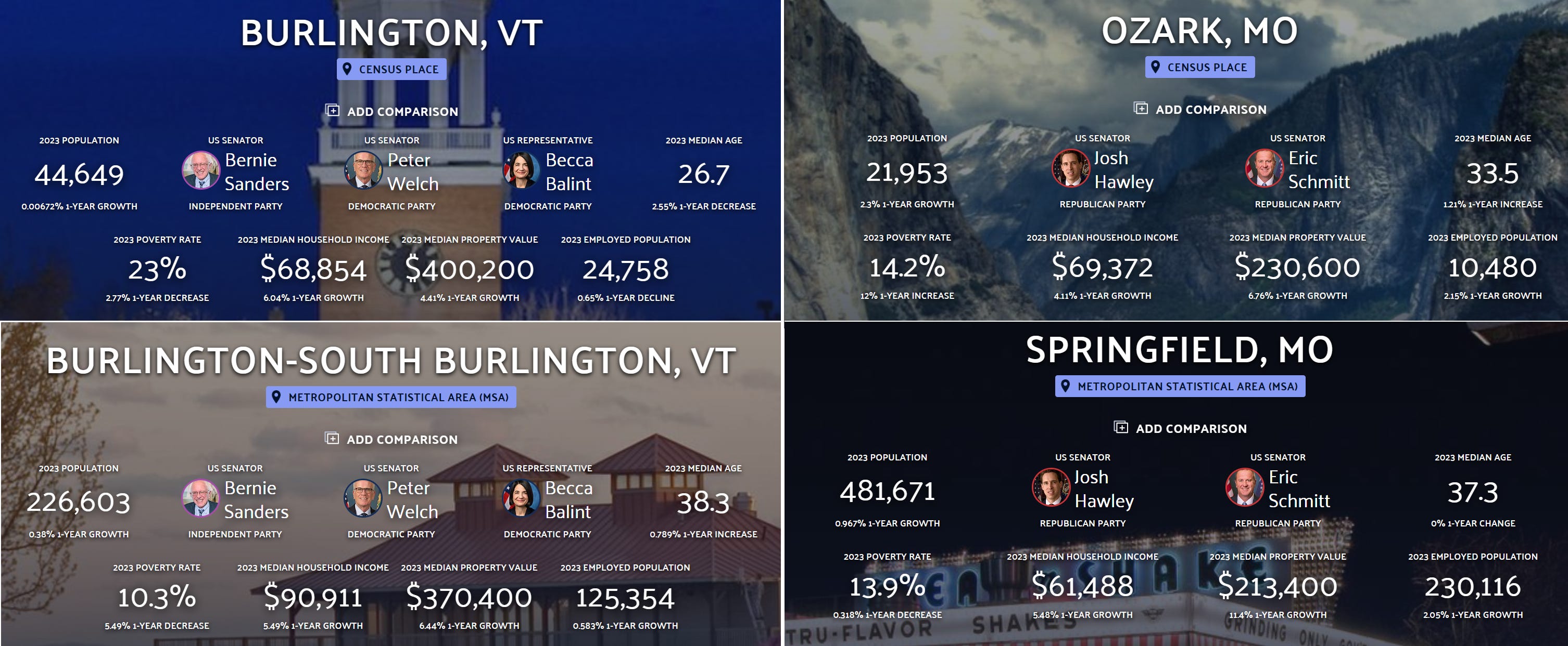 As much as they may hate the comparison, my summary of the greater Burlington area is it is New England's Ozarks (okay, not to this extreme). They share what are (perhaps) surprisingly similar raw literacy rates, and I would assess their rates of economic illiteracy to be similar as well in everything from accommodating dependency to land-use restrictions. Given that the cost of living is about 30% higher in the Burlington MSA compared to Springfield, MO, the Ozarks might be the more successful economic story—look at median household income and poverty rates below. $61,488 in Springfield is about equal to $80,000 in Burlington.