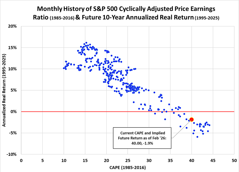 Don’t lose the Redwood tree for the forest. The chart is showing future implied real returns (adjusted for inflation) for S&P 500 stocks to be negative. Specifically, -1.9% per year on average or -17.5% for a decade in total.
